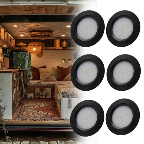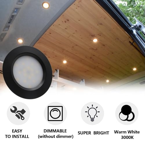 【Comfortable Lighting Experience】LED Campervan Recessed Mount Ceiling Light is warm white light color temperature of 3000K, 2.5W LED downlight can be dimmed from 25% to 100% (Needs to be equipped with dimmer switches, Dimmable switch not included)