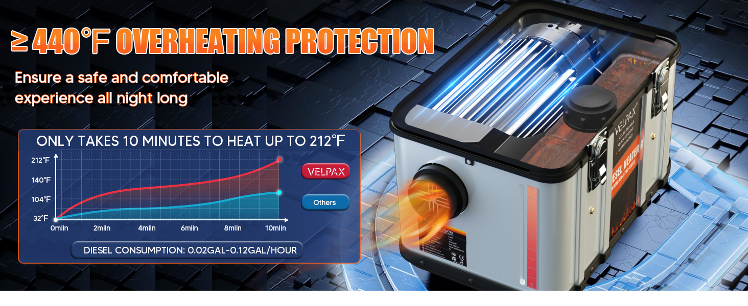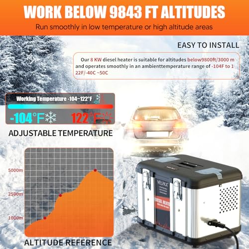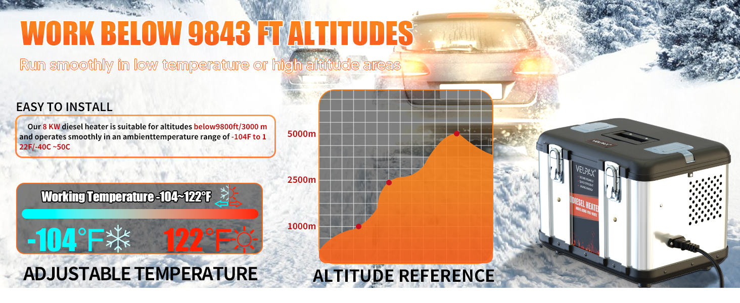 【Toolbox Diesel Air Heater】- With a power range of 8KW, our diesel air heater ensures customizable heating to suit your specific needs. Designed to temperatures ranging from -40 °C to +80 °C (-40 – 176 ℉), stay comfortably warm in your vehicle, no matter the outside temperature.