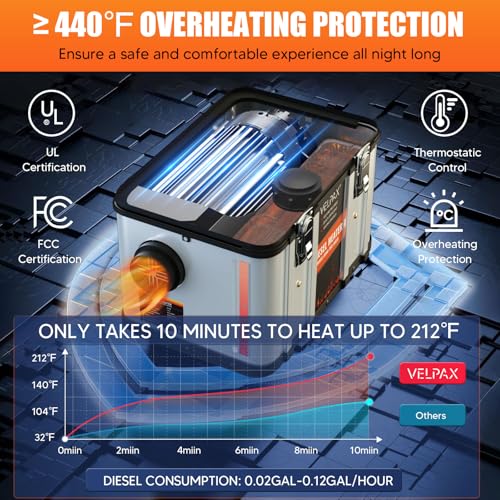 【Professional Internal Structure】- Crafted with excellence, our Toolbox Diesel Air Heater features a robust aluminum construction. The combustion chamber, base, and heat-dissipating scale are all sand-blasted aluminum components, ensuring uniform heat dissipation and rapid warming. The integrated muffler effectively reduces noise, creating a peaceful and quiet space.