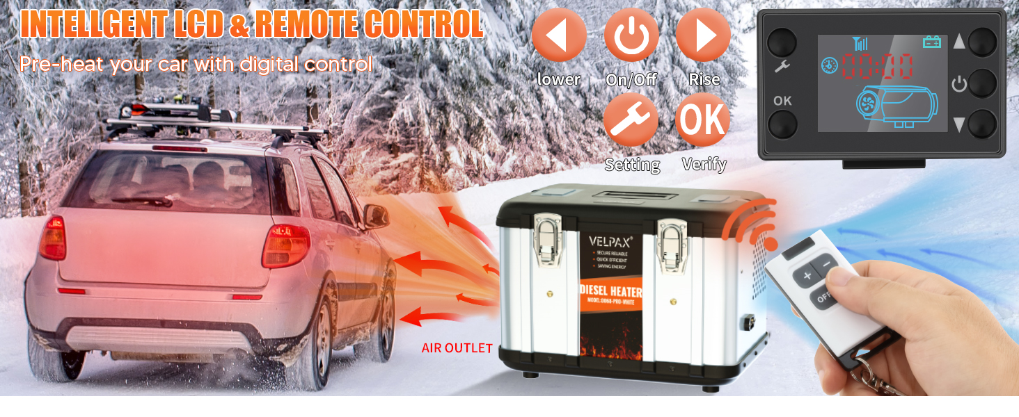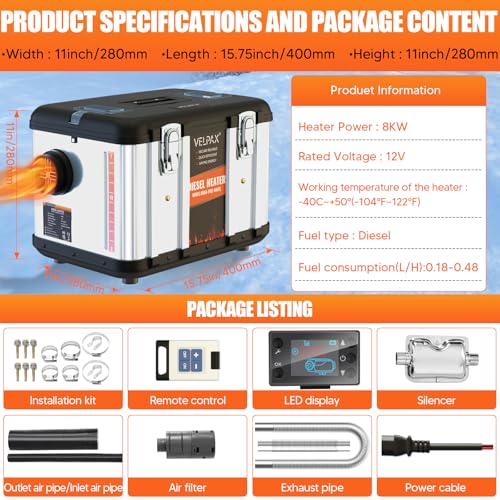 【Convenient Remote Control】- With the included remote control, you can control the diesel heater from up to 30 metres away, you can use our heaters more comfortably, and the thermostatic control, temperature adjustment, voice broadcasting, etc.