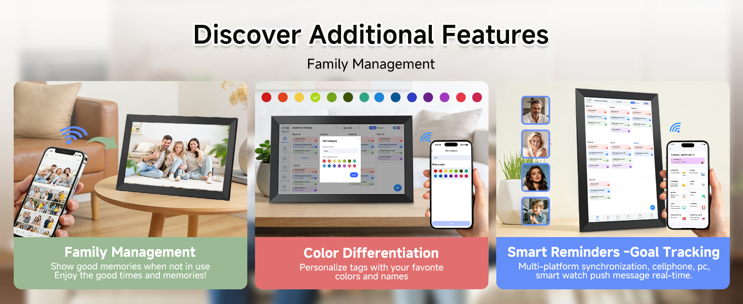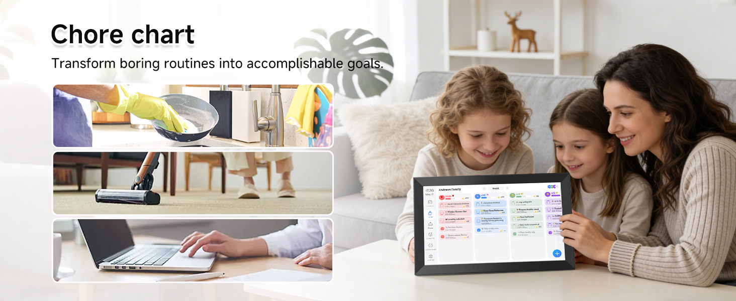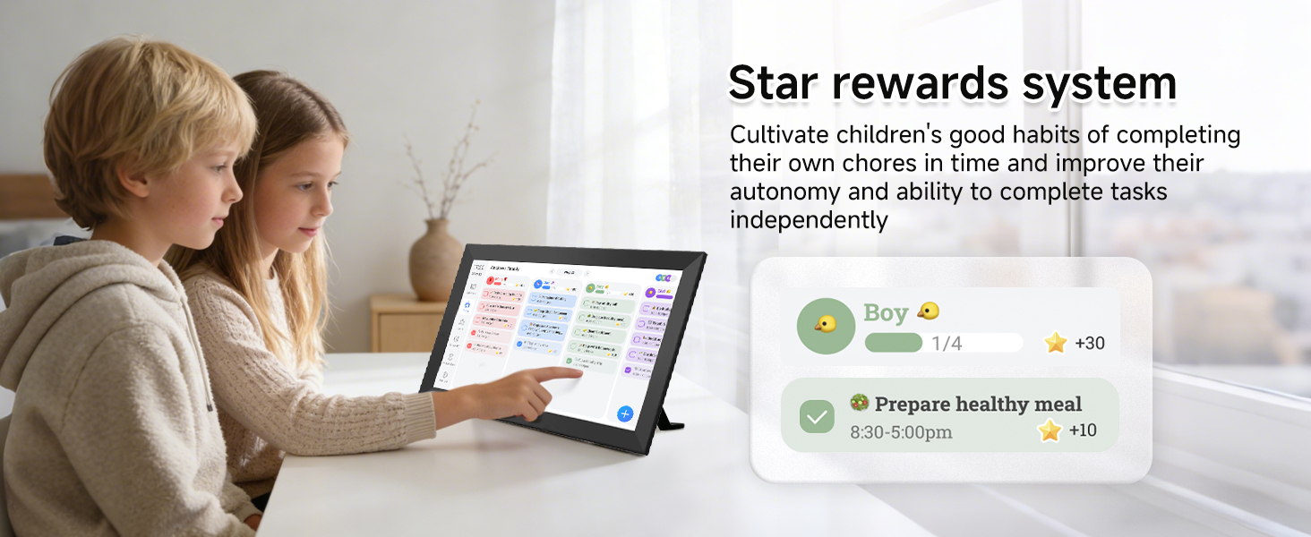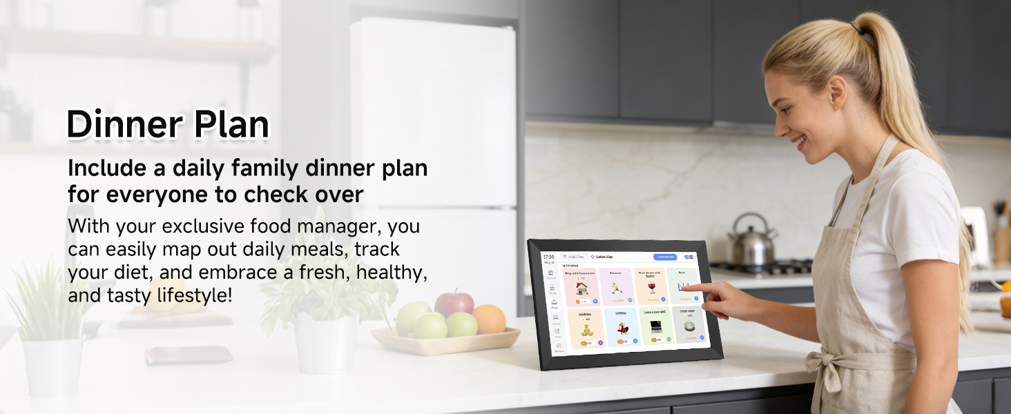 - Interactive Task Chart & Meal Plans Turn routines and to-do's into opportunities for kids to earn stars and unlock custom rewards, keeping them engaged and motivated. Display weekly meal plans, no more "What's for dinner?" . Take the guesswork out of mealtime with adedicated meal schedule that everyone can see.