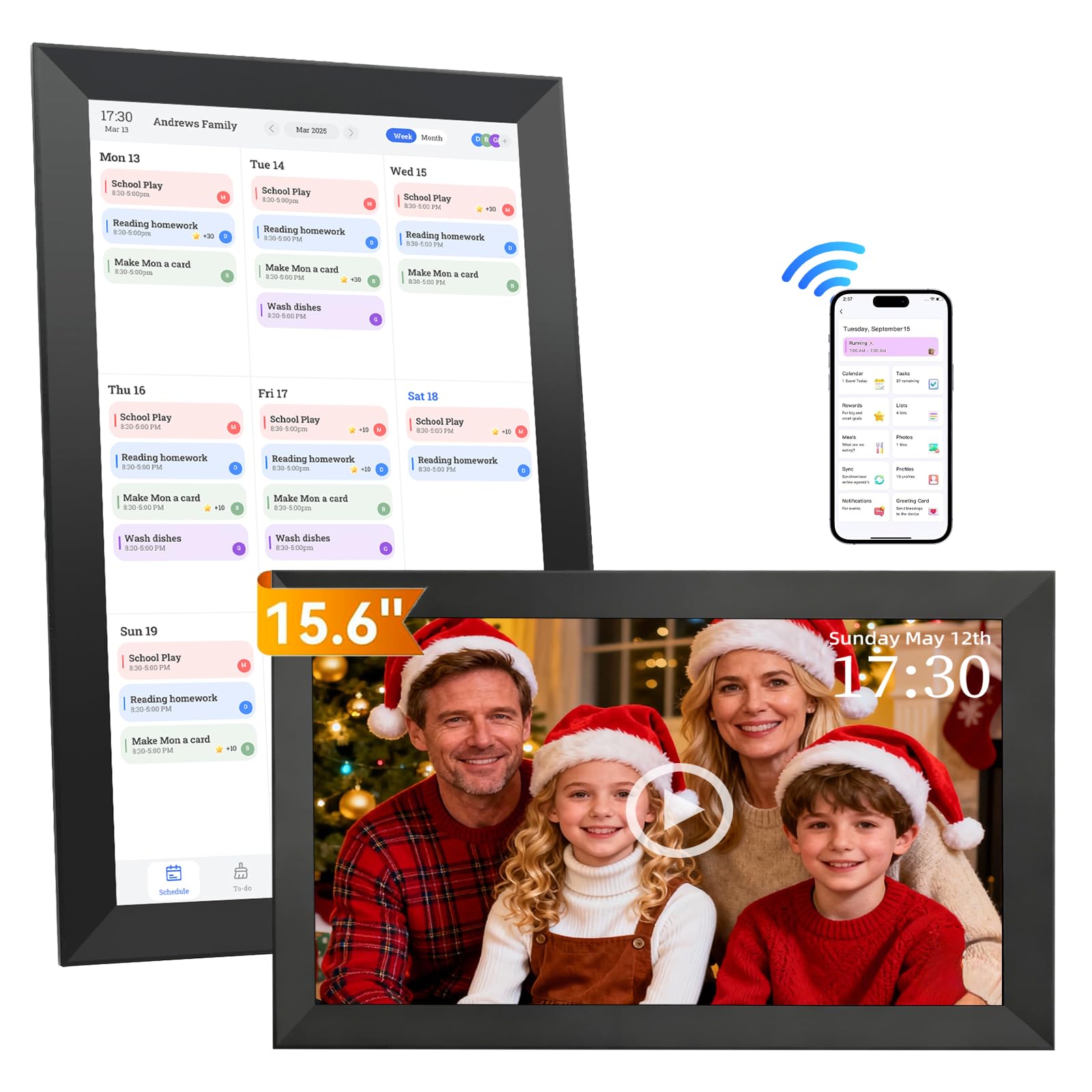 - ️Smart Digital Calendar TEKXDD 15.6” HD touchscreen family planner, a digital calendar and chore chart built for all families. Assign colors, add tasks, and helps the whole family easily plan and manage events across different views and features.