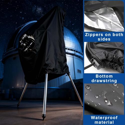 - Astronomical telescopic rain cover dimensions: Astronomical telescopic rain cover the sophisticated dimensions of 150 x 85 cm offer a very spacious interior. The case accommodates most medium to large telescopes and covers the entire device. This avoids inconvenience and friction caused by a too small but tight case.