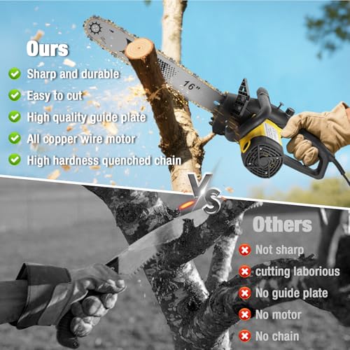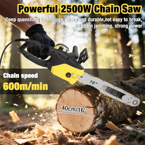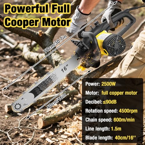 16″ Electric Chainsaw Corded, 2500W Powerful Electric