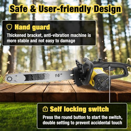 - 【LeadGoods Powerful 16-inch Electric Chain Saw】This corded electric chainsaw is lightweight and portable, perfect for housewives and DIYers. The 16" portable corded chain saw is equipped with a durable 16-inch guide bar and 2500W of powerful power, maximum speed: 4500rpm for fast cutting. The motor ensures that the 16" portable corded chain saw will not burn out during use and can be used continuously. This makes it easy to cut branches or logs quickly, saving you time and energy