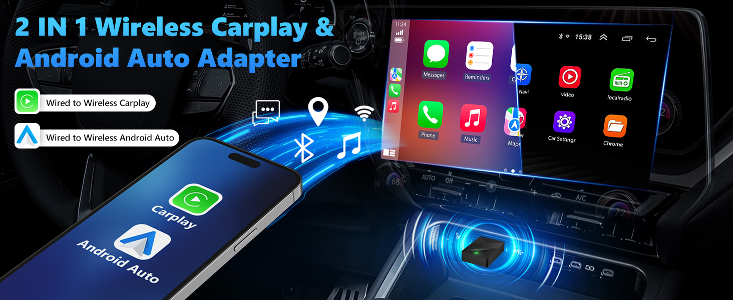 2 in 1 Wireless CarPlay & Android Auto Adapter, Plug & Play