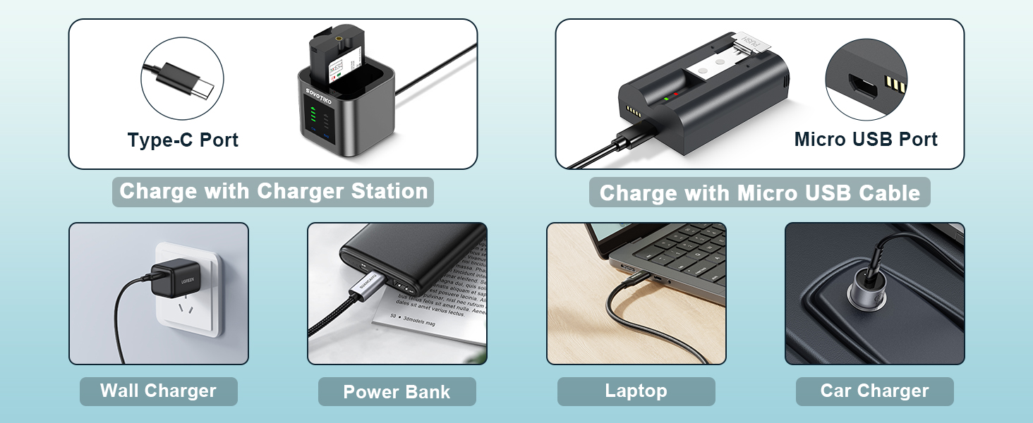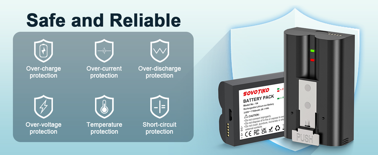 - Multiple Protection:The battery uses advanced over-current, over-charge, over-voltage, over-heat and short-circuit protection technologies to ensure the safety of the battery and charger.