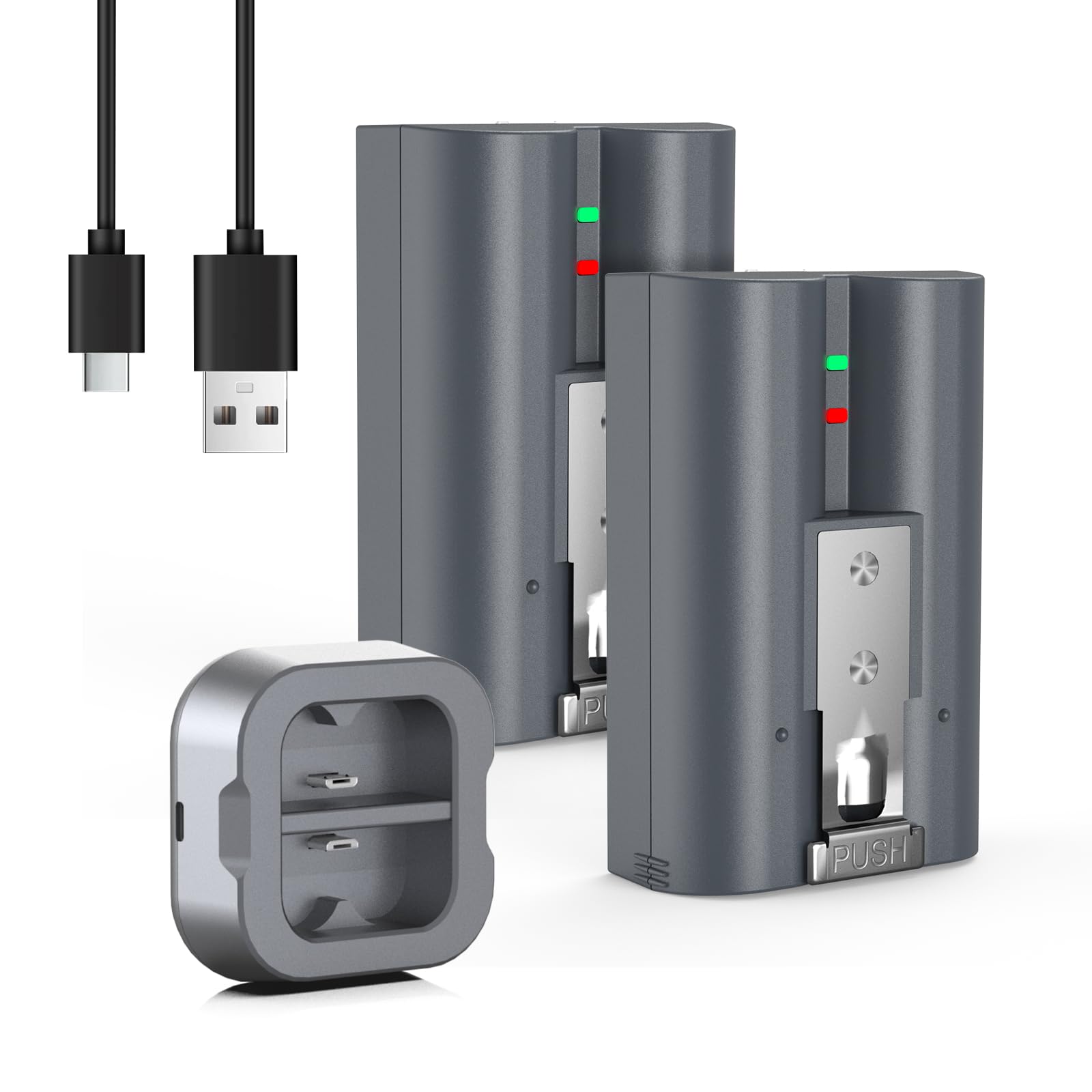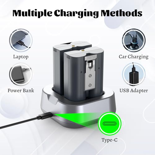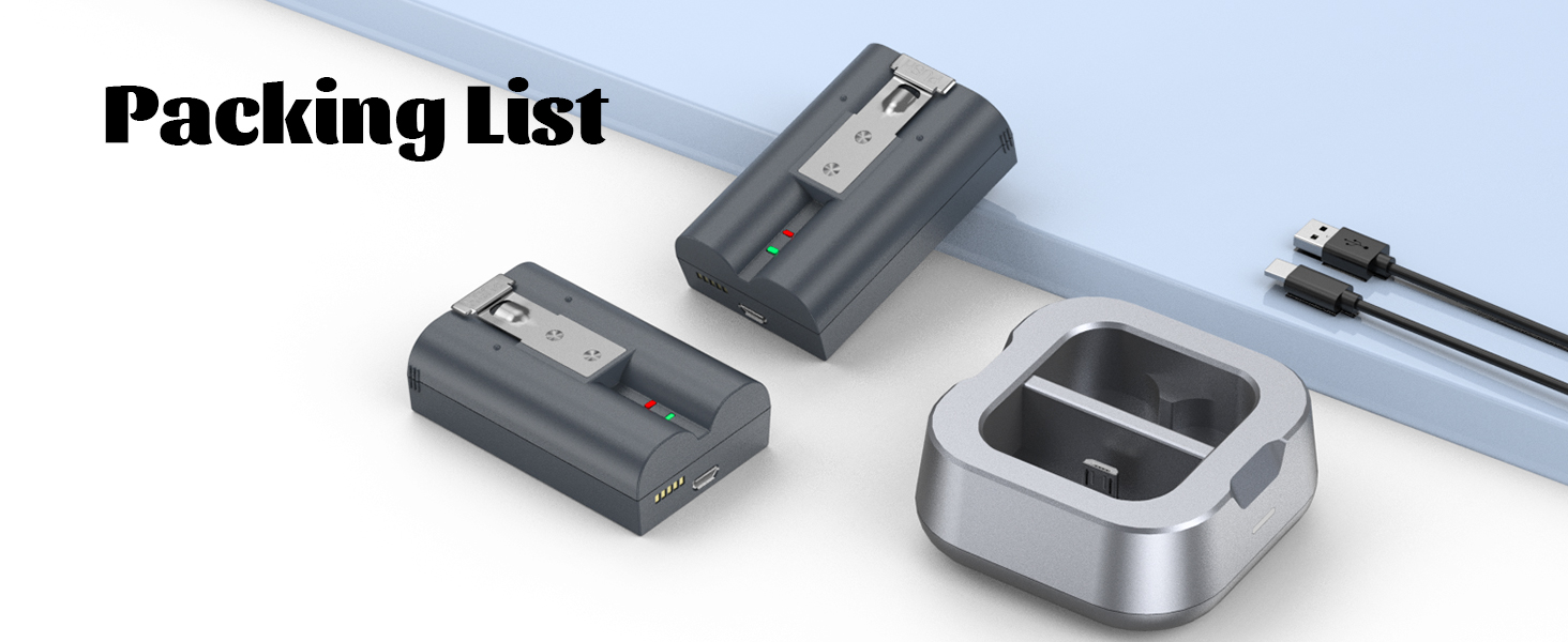 - 【Portable 2-Slot Charging Station】The battery charging station can be used with any 5V USB port, such as a PC, car charger, or power bank, to charge 2 batteries at the same time. 1 USB-C charging cable is included in the package.