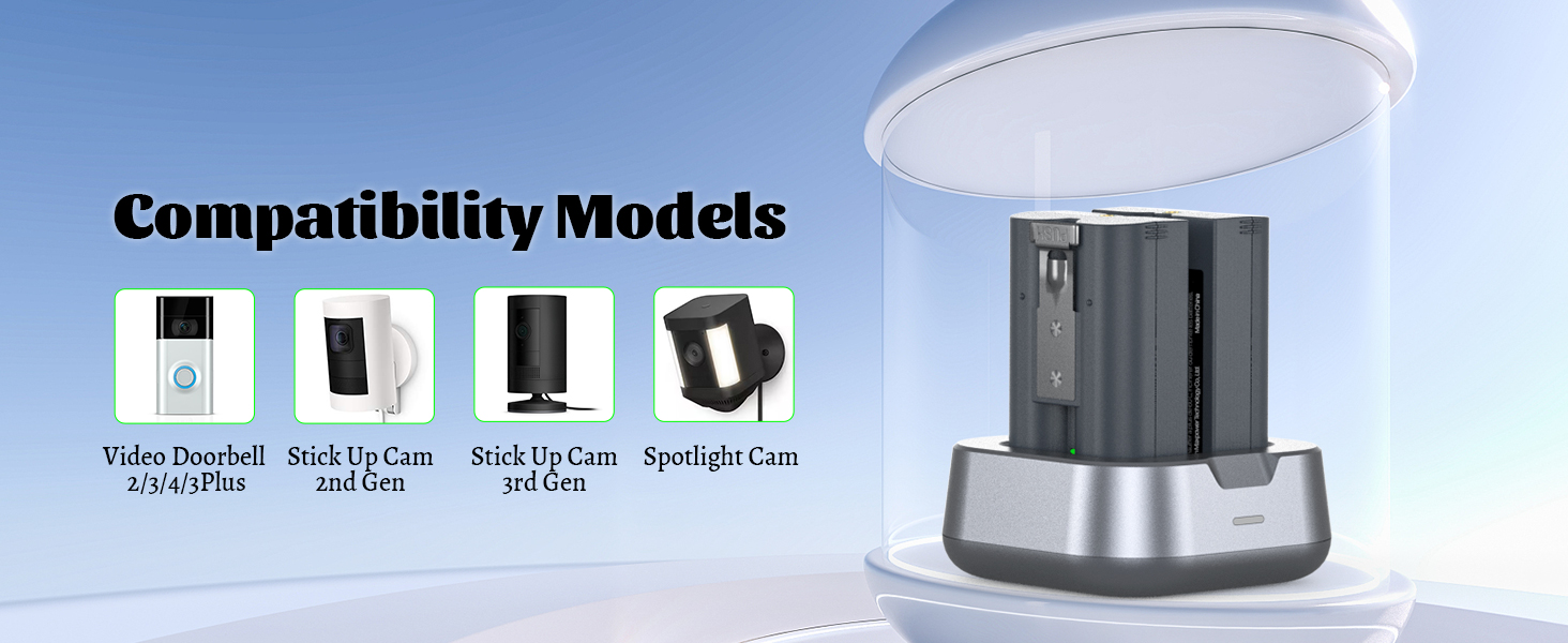 - 【Perfect Compatibility】Compatible with Ring-Video Doorbell 2/3/3 Plus/4, Battery Doorbell Plus, Stick Up Cam Battery/Solar (all gens), Stick Up Cam Pro Battery/Solar, Spotlight Cam Battery/Solar, Spotlight Cam Plus Battery/Solar/Wired, Spotlight Cam Pro Battery/Solar/Wired, Peephole Cam, Solar Floodlight.