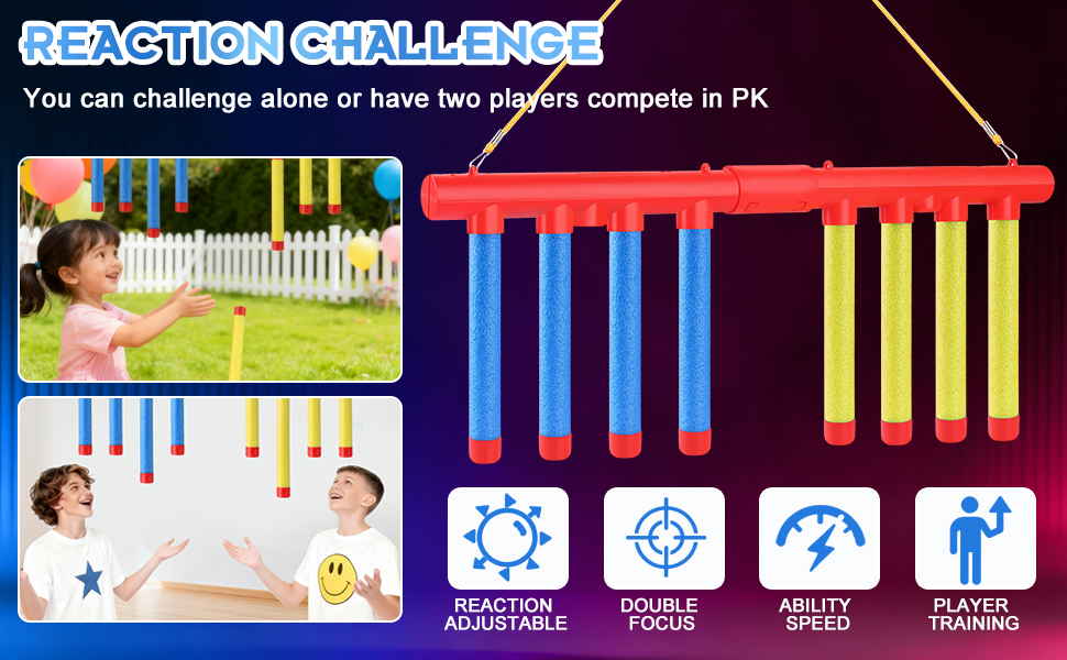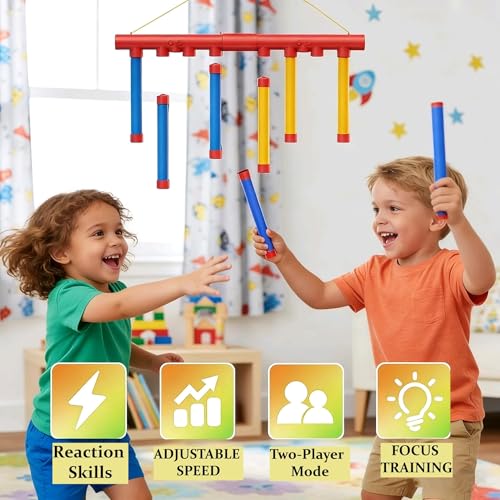 - 【 Dual Mode Excitement】 Experience two engaging ways to play with the Reflex Game, a type of Catching Sticks Game or Reaction Drop Sticks Game. In solo mode, you can challenge yourself to enhance your reflexes. Or, switch to the thrilling 2 Player Catching Sticks Game duel mode for competitive showdowns. It's perfect for sibling rivalries, friendly competitions, and family game nights, offering endless entertainment as a dynamic Drop Reaction Game.