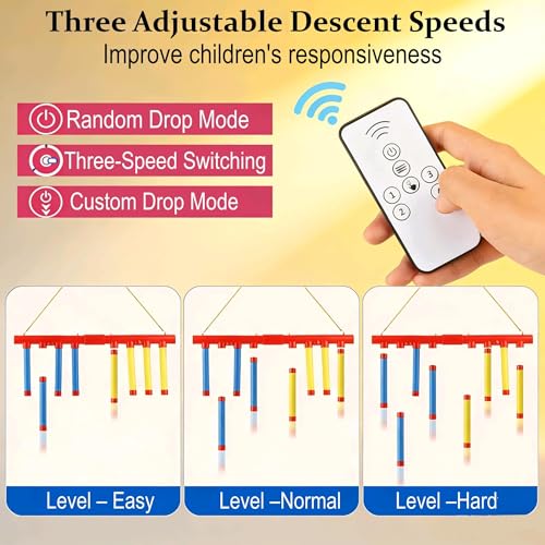 - Drop sticks game from entry-level (low) to expert level (high)—3 adjustable speed levels for all ages and skill levels players, perfect as a catching sticks game adults can enjoy. You can adjust the difficulty according to your own level and continuously improve your gaming skills.(batteries are not included in the packaging).