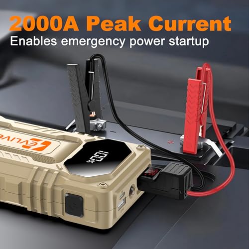 【2000A Powerful & Reliable Jump Start】 – Boost dead 12V batteries in seconds with 2000A peak current. Starts vehicles with up to 9L petrol or 8.5L diesel engines. Provides up to 20 starts per charge and operates reliably in extreme temperatures from -20°C to 60°C.