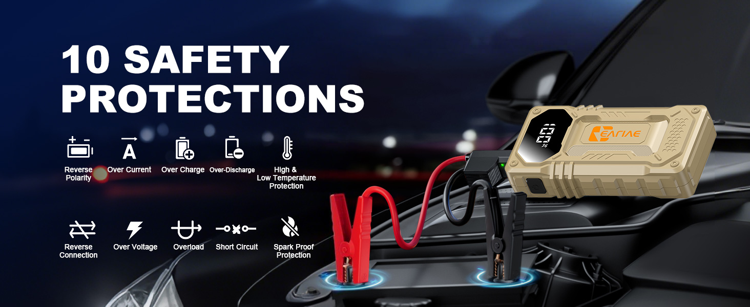 【10 Advanced Safety Protections】 – Engineered for complete peace of mind with 10 built-in protections: Spark-Proof, Reverse Polarity, Over-Current, Short-Circuit, Over-Temperature, Over-Load, etc. CE Certified. Visual and audible alarms immediately alert you to incorrect connections.