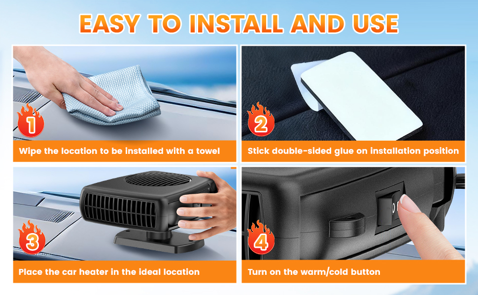 Simple Plug-in Operation: Enjoy immediate warmth with this straightforward plug in car heater. It is designed as a convenient car heaters that plug into cigarette lighter socket, requiring no complex installation. This user-friendly plug heater starts working with a simple connection, delivering heat on demand. The easy-to-use nature of this 12v heater makes it accessible for all drivers seeking a quick heating solution.