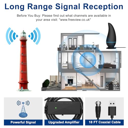 - 【Support HD Signals】The TV aerial indoor adopts a high-performance receiving chip, which fully supports Freeview HD channels, including BBC, ITV, Channel 4, Channel 5, etc. It is compatible with 4K and 1080P HDTV signals, allowing you to enjoy HD picture quality and high-fidelity sound at home.