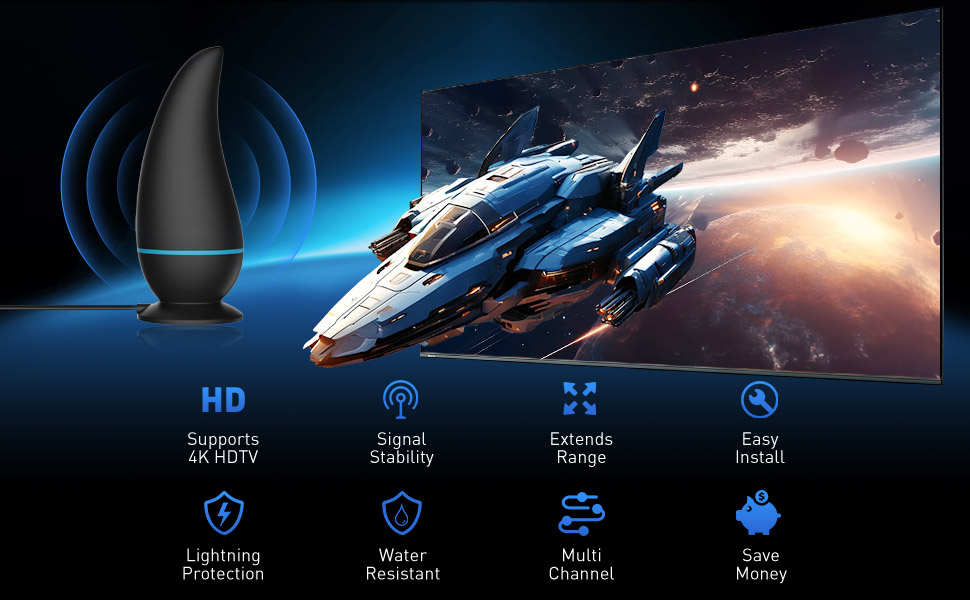 - 【Save TV Expenses】No longer need to pay monthly fees for expensive cable TV services, this TV antenna indoor helps you receive multiple local and national channels for free, and is an ideal choice for saving money on home entertainment. Especially suitable for home users who want to reduce bills without sacrificing the richness of TV programs.