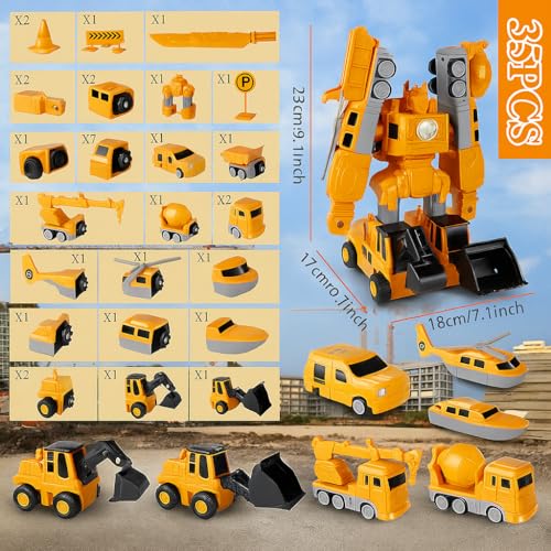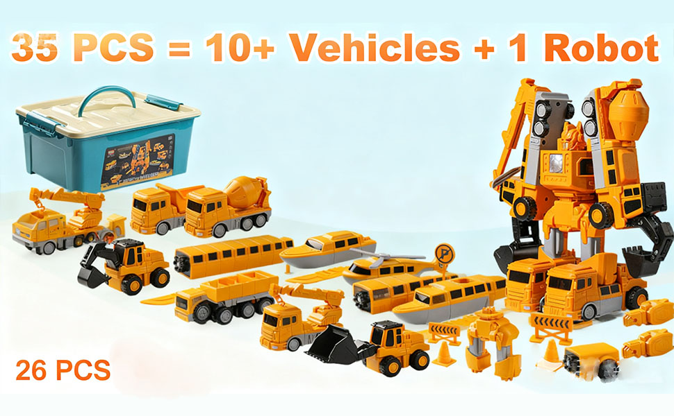 2026 New Magnetic Robocar Set, 35PCS 7-in-1 Transform Robot Cars & Construction Vehicles, STEM Magnetic Building Blocks for Kids,Educational Engineering Toys with Storage Box (26Pcs)