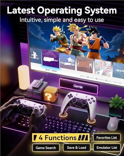 - Simple plug-and-play setup: Connect HDMI to your TV, insert the TF game card, and power the console with the charging adapter to automatically turn it on. Switch your TV to the HD channel to view the game list