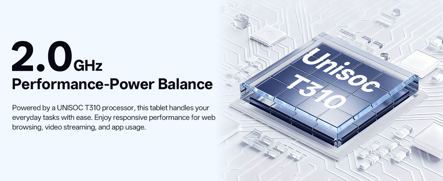 Powerful Performance – Equipped with a T310 processor, this tablet effortlessly handles daily tasks such as web browsing and media streaming. The latest Android 15 OS delivers smarter, safer performance through deeply optimized software and hardware integration.