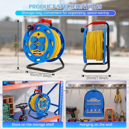 【Versatile Power Solution】–A must-have for professionals, DIY enthusiasts, or general household use, this durable 4-socket outdoor extension lead is perfect for providing safe and practical power both indoors and outdoors. Whether powering a lawnmower or tools, this overload-protected cable reel ensures reliable power whenever you need it.