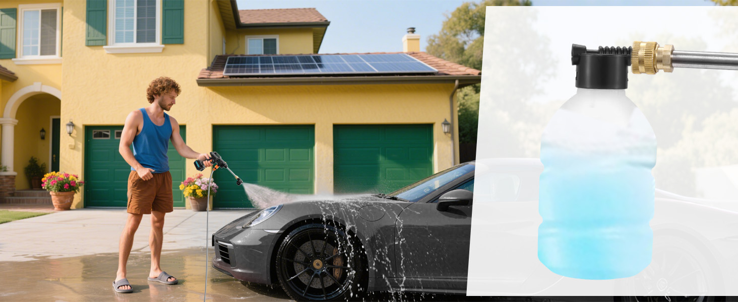 [6-in-1 Nozzle for Total Cleaning Control] Maximise versatility with our cordless pressure washer’s adjustable nozzle. Easily switch between six precision modes—0° (jet), 15°, 25°, 40°, soft shower, and spray—to tackle everything from stubborn stains on patios to gentle rinses on car paint. Customise pressure in seconds and clean smarter, with zero compromise.