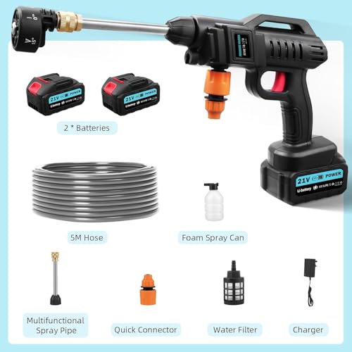 [Long-Lasting Dual Battery | 60 Mins Cordless Power] Tackle your biggest cleaning projects without interruption. Our cordless jet wash includes two high-capacity 21V 2000mAh lithium-ion batteries, delivering a combined 60 minutes of robust cordless performance. Engineered for demanding tasks like patio deep cleans, full vehicle washes, and large deck maintenance—clean anywhere, anytime, with zero power cords or outlets needed.