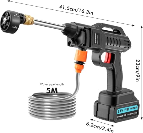 [Powerful Cordless Cleaning] Experience exceptional cleaning freedom with our portable jet washer cordless, delivering a powerful 62 Bar maximum pressure to remove stubborn dirt, oil, and grime with ease. Its high-efficiency flow rate of 270 L/H ensures thorough cleaning while conserving water. With an extended 10-meter spray range, effortlessly clean cars, patios, driveways, garden furniture, fences, and windows—all without the hassle of cords or outlets.