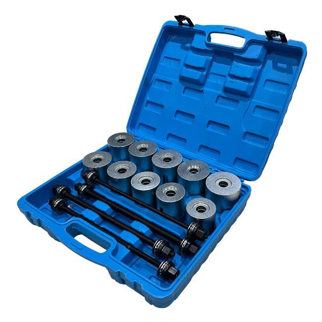 - ✅ 24 PIECE PRESS & PULL KIT – Complete sleeve and spindle system for removing and installing bearings, bushes and seals.