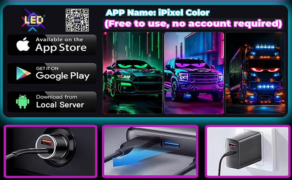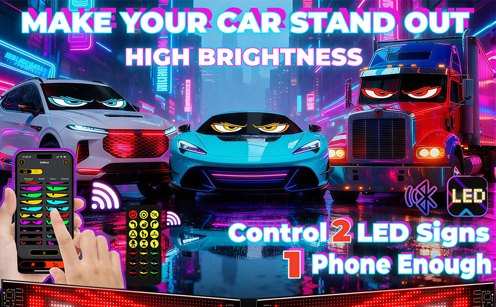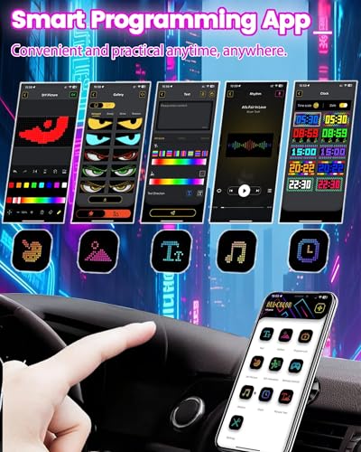 【Unleash Your Creativity with App-Driven Customization】 Control Flexible LED Panel seamlessly via our mobile app (compatible with iOS & Android). Connect via Bluetooth to access unlimited customization—edit scrolling text, create original designs, or upload custom images and GIFs. Transform your vehicle into a dazzling DIY light show that expresses your unique style, with always-available content including hypnotic eyes, dynamic patterns, or personalized logos.