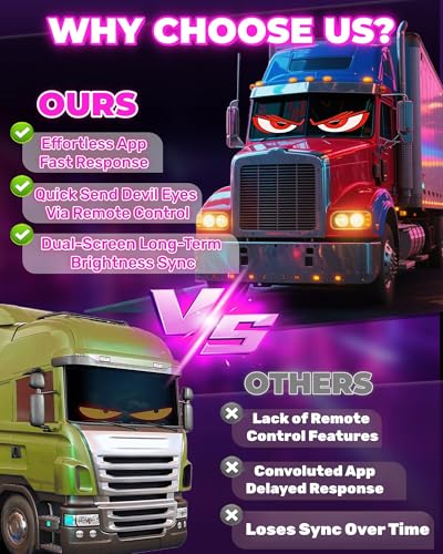 【Smart App-Controlled Sync】Unlock endless eye patterns and seamless synchronization via the app—simply connect both LED panels, choose your design, and download. They’ll mirror each other instantly. The included remote also offers 9 one-tap preset styles for quick customization.