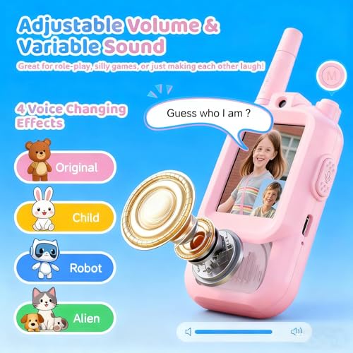 2PCS Kids Video Walkie Talkies with Screen, Rechargeable Long Range Walkie Talkie Toys for Ages 3-12, 4 Voice Changer & 2-Way Radio for Indoor Outdoor Camping, Christmas Birthday Gifts