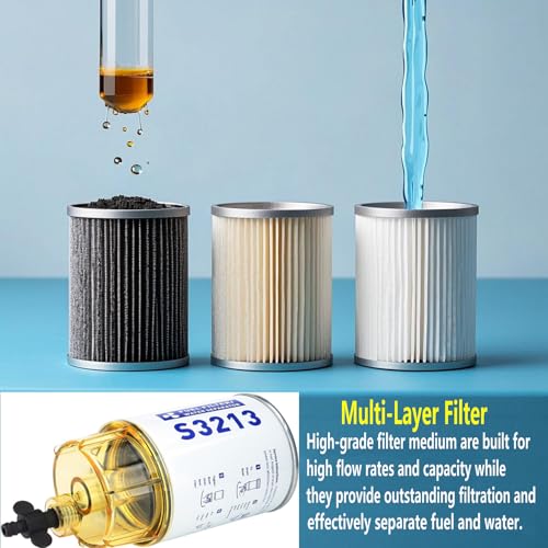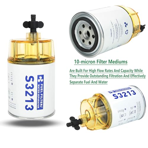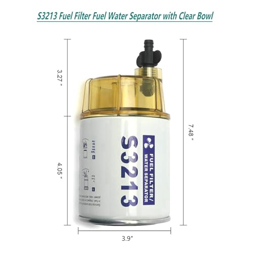 - 【S3213 fuel filter Comprehensive Filtration & Broad Compatibility】: This S3213 Marine fuel filter water separator as your primary water fuel separator for boats. Its multi-stage filtration effectively separates water, safeguards engine performance, and fits various marine application.compatibility with Yamaha, Mercury, Racor, Sierra, and Suzuki outboard engines etc.It fits a wide array of universal fuel applications, particularly on outboard marine engines