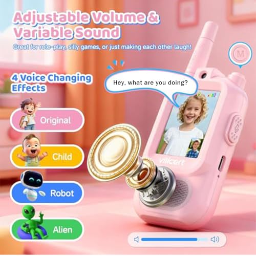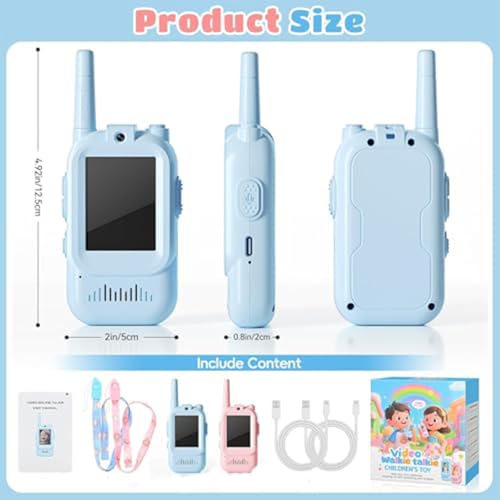 2Pcs Video Walkie Talkies for Kids, Handheld Rechargeable