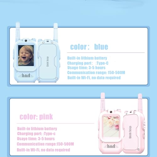 2Pcs Video Walkie Talkies for Kids, Handheld Rechargeable Video Intercom Kids Walkies Talkies, Indoor Outdoor Toys for Family Games, Outside, Camping, Hiking for Boys Girls Ages 3-12 (Blue/Pink)