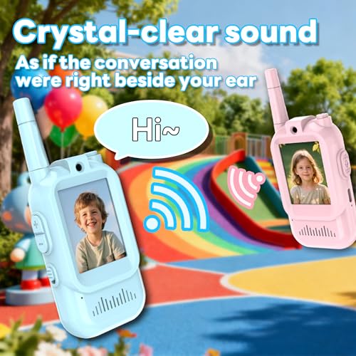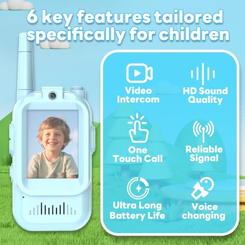 - 【Video Walkie Talkies】Features built-in camera and display for face-to-face video calls,kids will enjoy these walkie talkies for kids with video and voice chat.This kids walkie talkie 2 pack lets toddlers, boys, and girls age 3-5 share fun moments while playing in the garden or different rooms around the house.