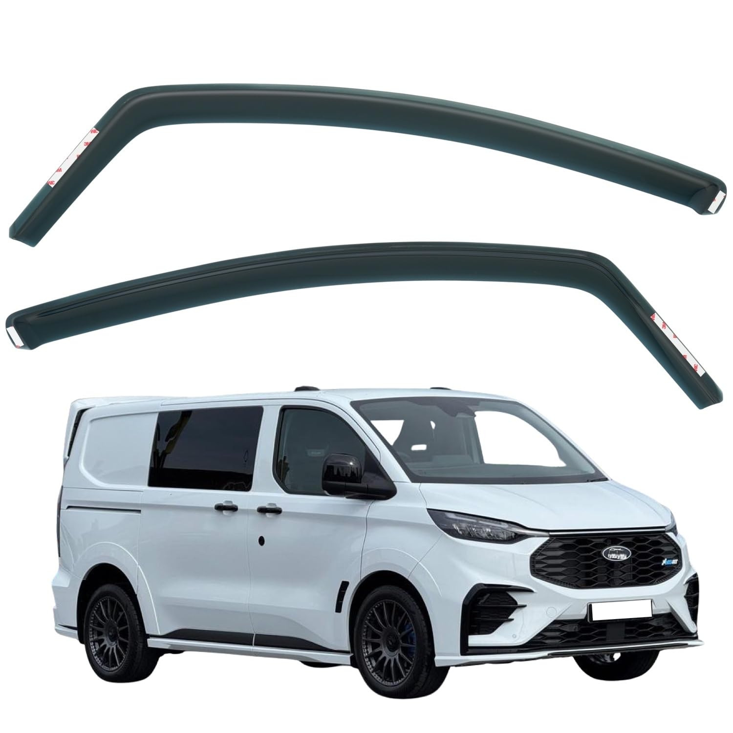 - ** PREMIUM QUALITY ** Set of 2 IN-Channel Rain & Wind Deflectors Compatible With FORD TRANSIT CUSTOM Fits FORD TOURNEO CUSTOM 2024 2025 2026 Models.