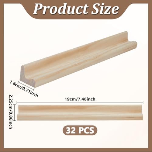 32 Pack Wood Racks Tile Holders Smooth Trays Replacement Wooden Word Game Rack Tray for Letter Tiles Crafts Mahjong Board Games School Students Stand 7.48×0.7×0.88inch