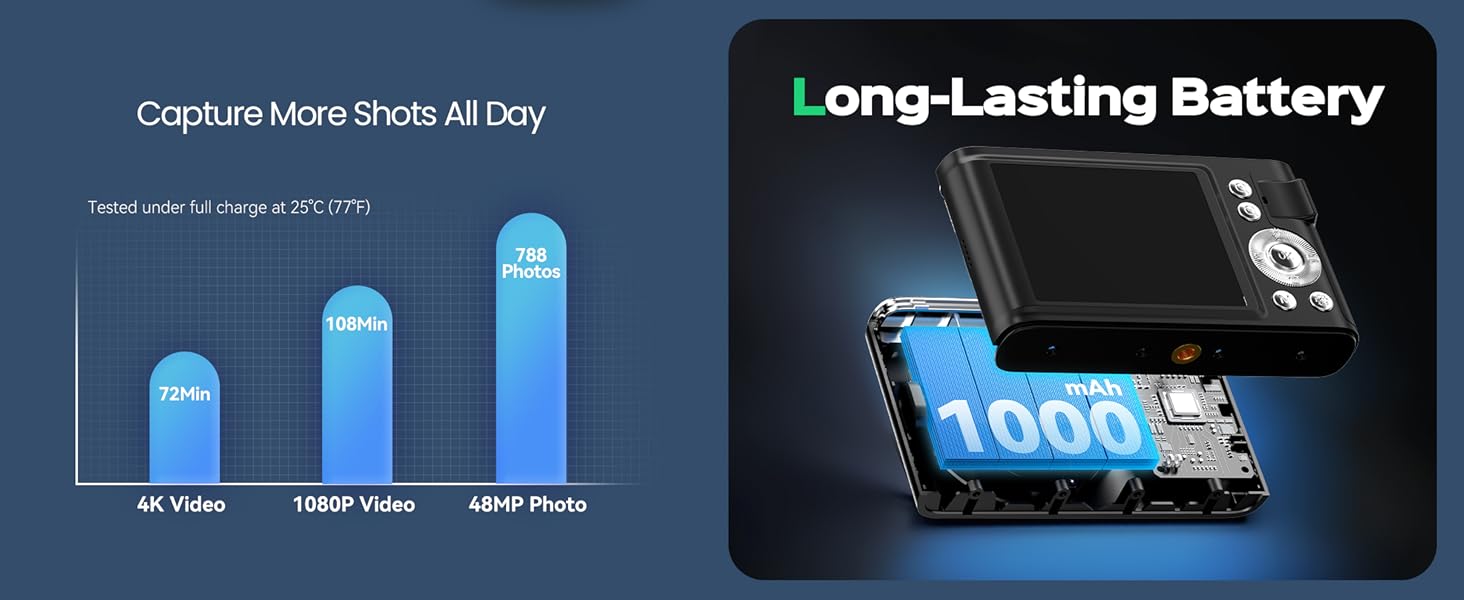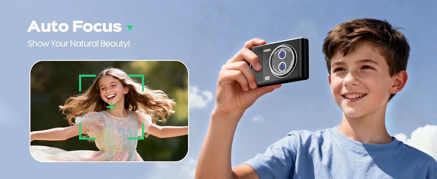 Easy to Operate: Designed for convenient use, it caters to the daily photography needs of people of all age groups. With intuitive buttons and a simple menu, capturing moments only requires one-click operation—eliminating the common learning curve of traditional digital cameras, so even beginners can master it quickly