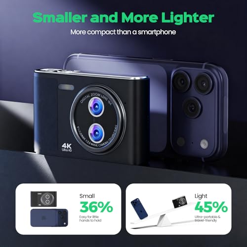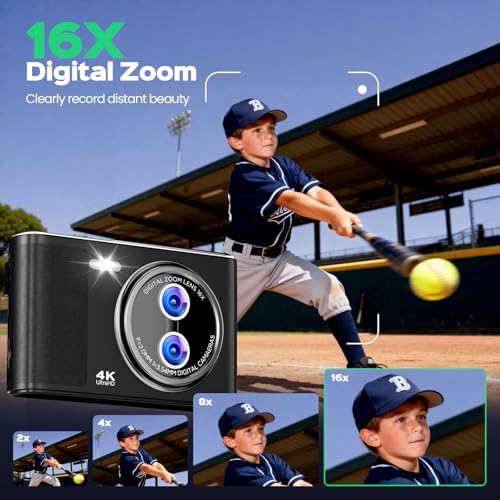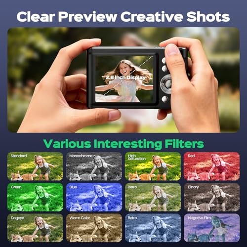 32GB Digital Camera Compact 48MP Autofocus 16X Digital Zoom Photo Camera: 2.8 Inch 4K LCD Screen Portable Vlogging Photography Camera for Kids, Beginners, Teens, Students with Lanyard