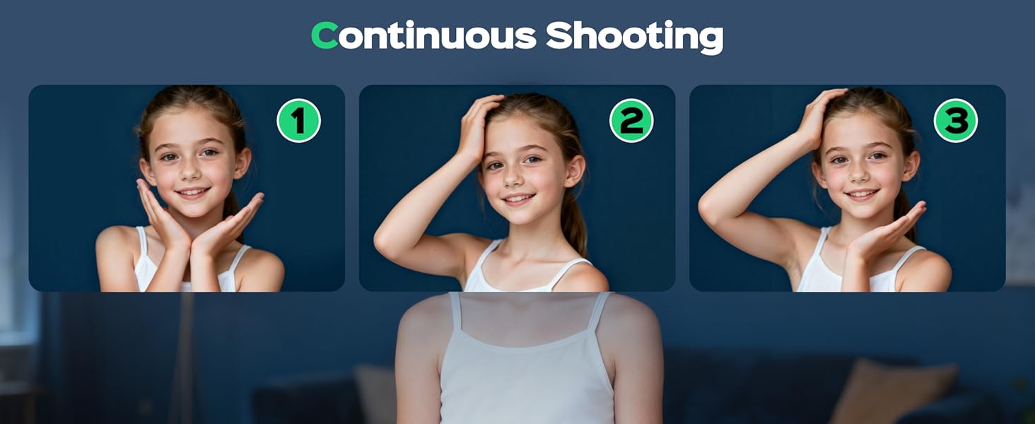16X Digital Zoom + Enhanced Autofocus: Featuring a 16X digital zoom function, paired with an upgraded autofocus system, it effectively reduces photo blurriness or shakiness, ensuring users won’t miss any great shots. Even in long-distance shooting scenarios, it can capture clear images, bringing more possibilities to the photography experience