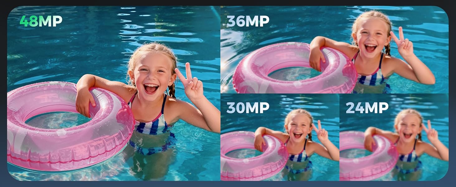 Outstanding High-Definition Imaging Performance: Equipped with a 48-megapixel (48MP) ultra-high definition (UHD) configuration and the latest CMOS sensor, it can easily capture impressive 48MP still photos and 4K videos. No complex manual settings are required—it automatically delivers natural, vivid colors and clear, detailed images, helping users preserve wonderful and memorable moments conveniently