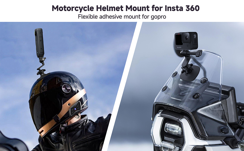 - Value-Packed Packing List: All you need for instant use for insta360 motorcycle mount, the package contains everything required for quick setup, 360° Rotatable Flexible Adhesive Mounts (with 3M stickers) x 2, 1/4" Adapters x 2 (for universal compatibility), Screws × 2 (for secure camera installation).