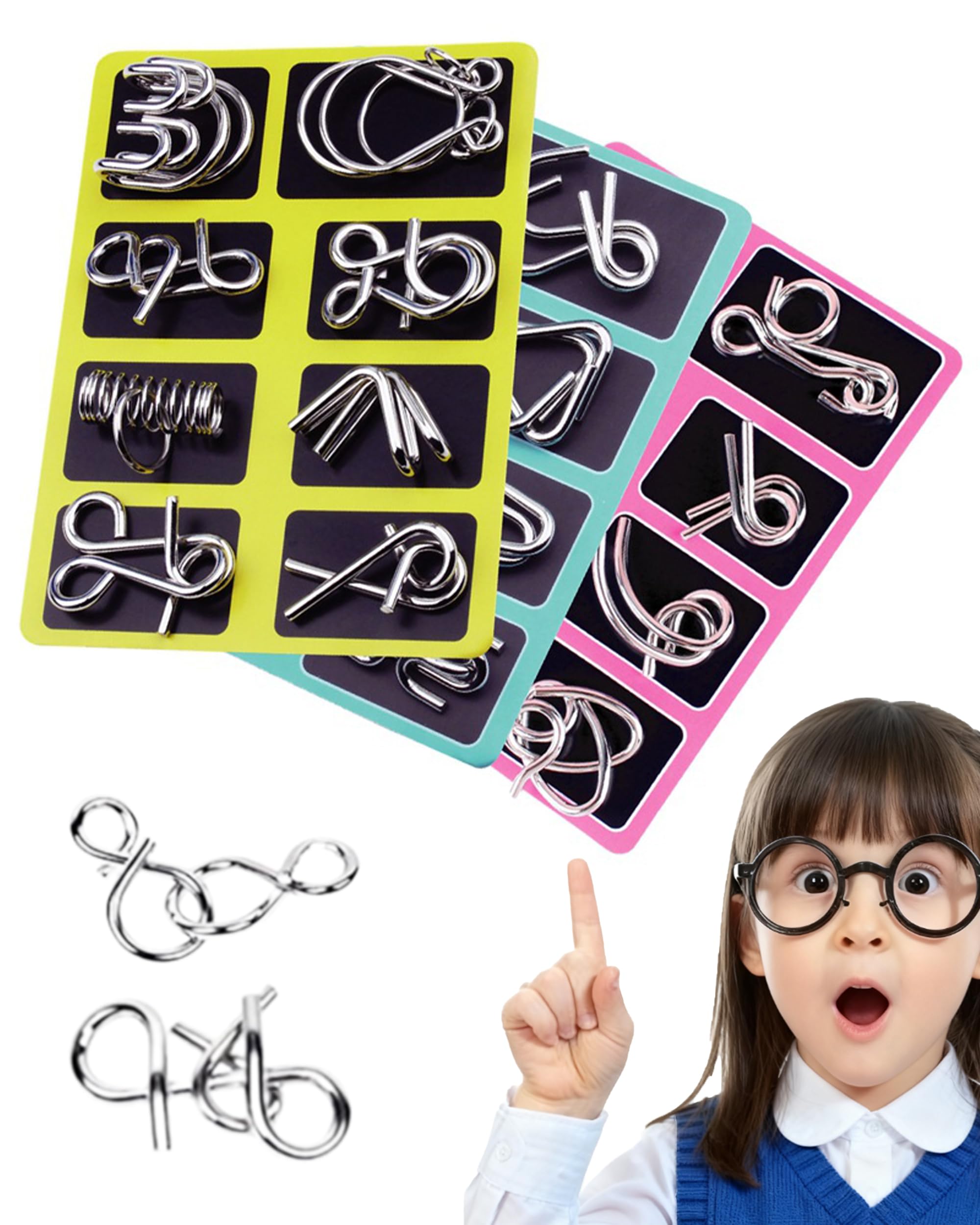 3D Montessori Metal Puzzle Set, 24-Piece Metal Brain Teaser Puzzles for Adults, Reverse Thinking Physics Mind Games, Metals Puzzle Ring Disentanglement Set with Carry Pouch for Party Challenge (ALL)