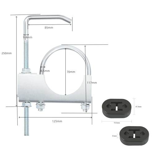 - [Wide Vehicle Compatibility]- This universal exhaust hanger with clamp fits most 3-inch (76mm) exhaust pipes on cars, trucks, and SUVs. Perfect for repairs, replacements, and upgrades, it’s suitable for multiple exhaust configurations and helps maintain quiet, efficient vehicle performance