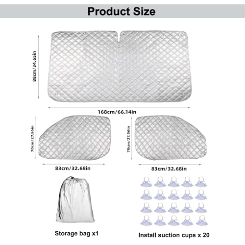 Quick & Easy Installation: Installing the set takes minutes—no tools needed. The windscreen cover uses suction cups for secure attachment, non-slip fit(Please wipe the dust off the car window before use). Even beginners can install it in under 5 minutes, easy to set up/take down for busy camping trips.