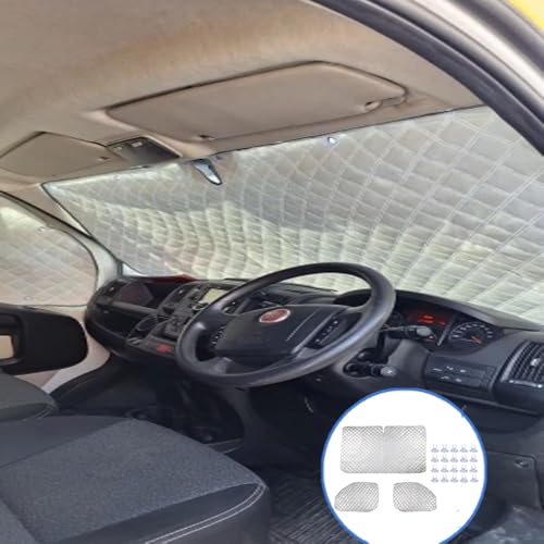3Pcs Internal Thermal Blind Set Compatible with 06-24 Fiat Ducato, Front Window Windscreen Cover x1 | Car Window Sunshades x2, Summer UV Protection & Winter Insulation for Campervans/Motorhomes