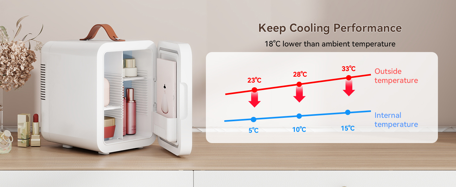 - Versatile Temperature Control: This 4-liter mini fridge has a temperature range from 5°C to 60°C, making it perfect for storing skin care products, drinks, food, and even heating wet towels for soothing skin or insulating breast milk.