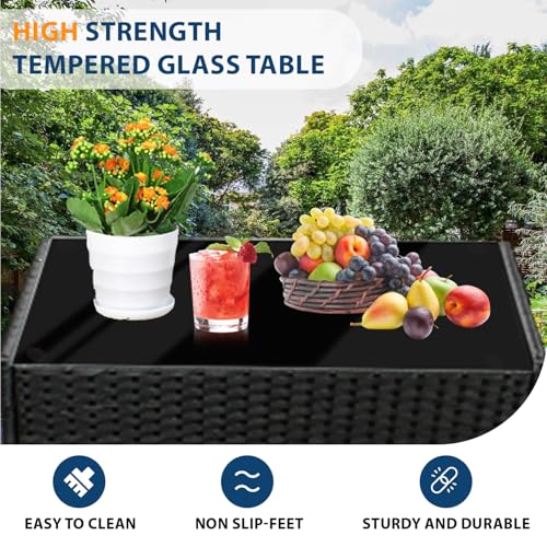 STURDY STRUCTURE & DURABLE MATERIAL – This patio furniture set is made with a powder-coated steel frame and handwoven weather-resistant PE wicker, providing durability with strong toughness and excellent load-bearing performance. It is not easy to break after long-term use. The coffee table features 5mm tempered glass.