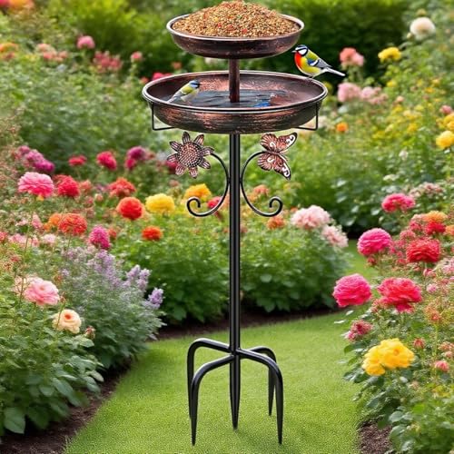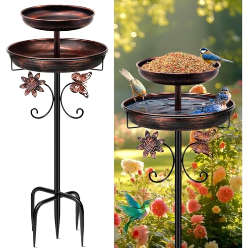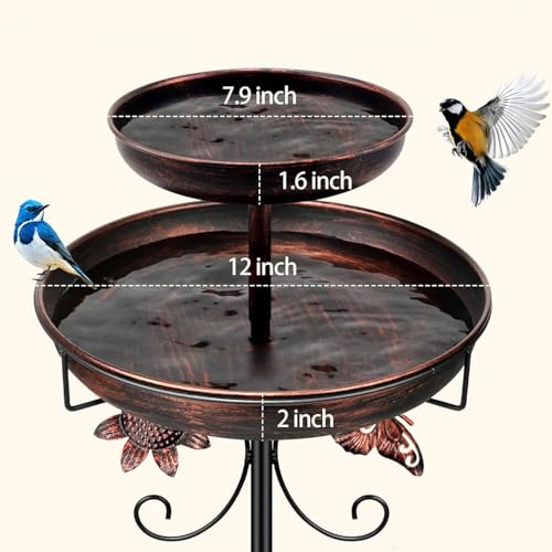 42In Vintage Metal Bird Feeder with Bath, Double Bowl 2-in-1 Bird Feeders and Bird Baths Supports for Outdoor Garden Patio Yard Lawn Bird Supplies