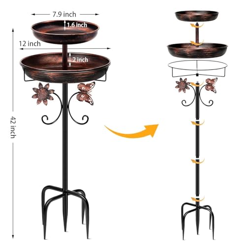 Bird Baths Feeder Bowl: Standing size of 30.5×30.5×106.7cm(12×12×42in), adjustable height (number of poles to choose from), double-layer design, allowing birds to eat, drink, and bathe, and play freely